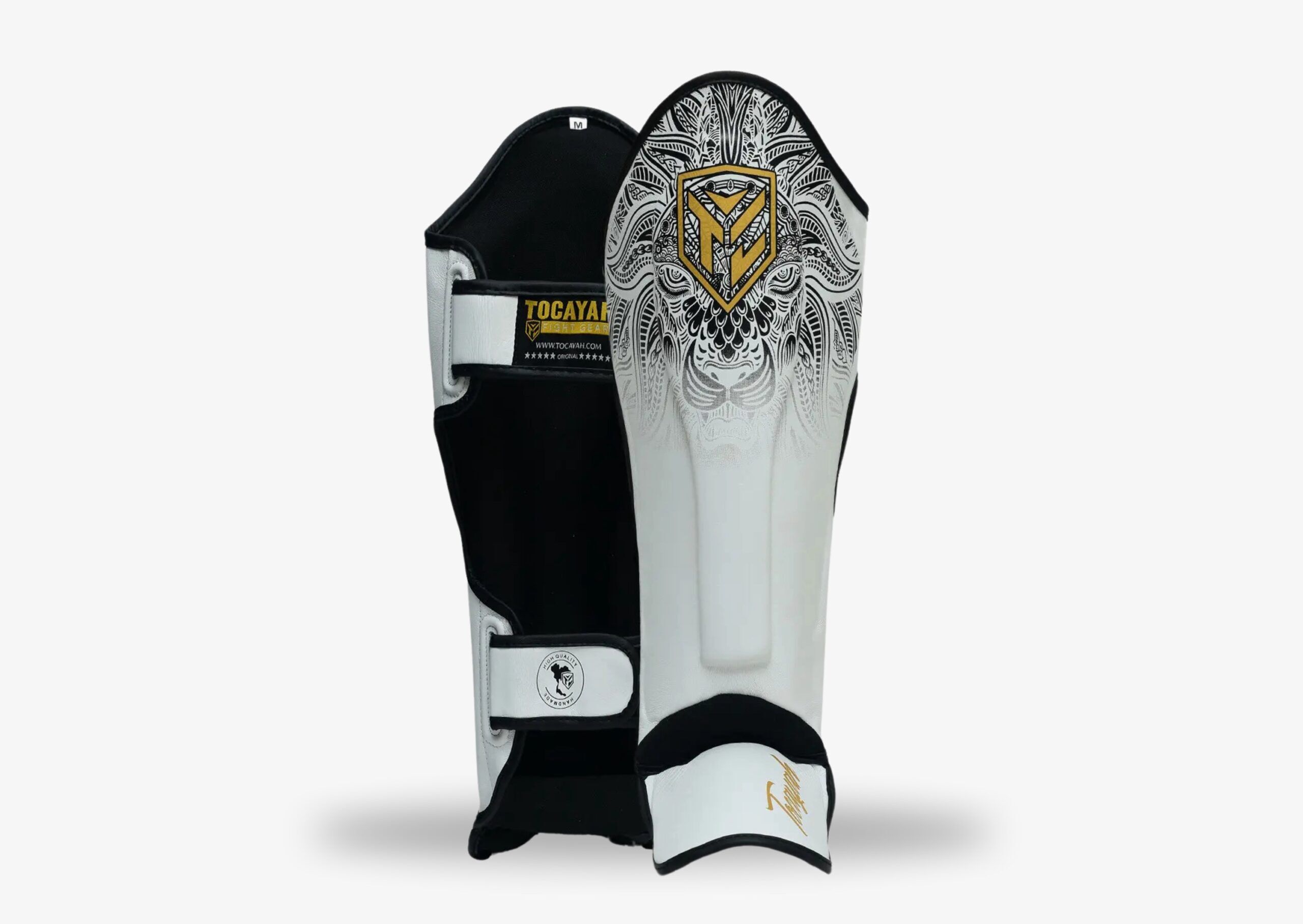 The Tocayah Black Lion Shin Guard: Also available in Black, the Tocayah shin guard will perfectly adjusts to your shin and will thus offer a full protection thanks to its rigid leather and to its system of closure as well as its beautiful design. Train and kick harder and harder with all your confidence .