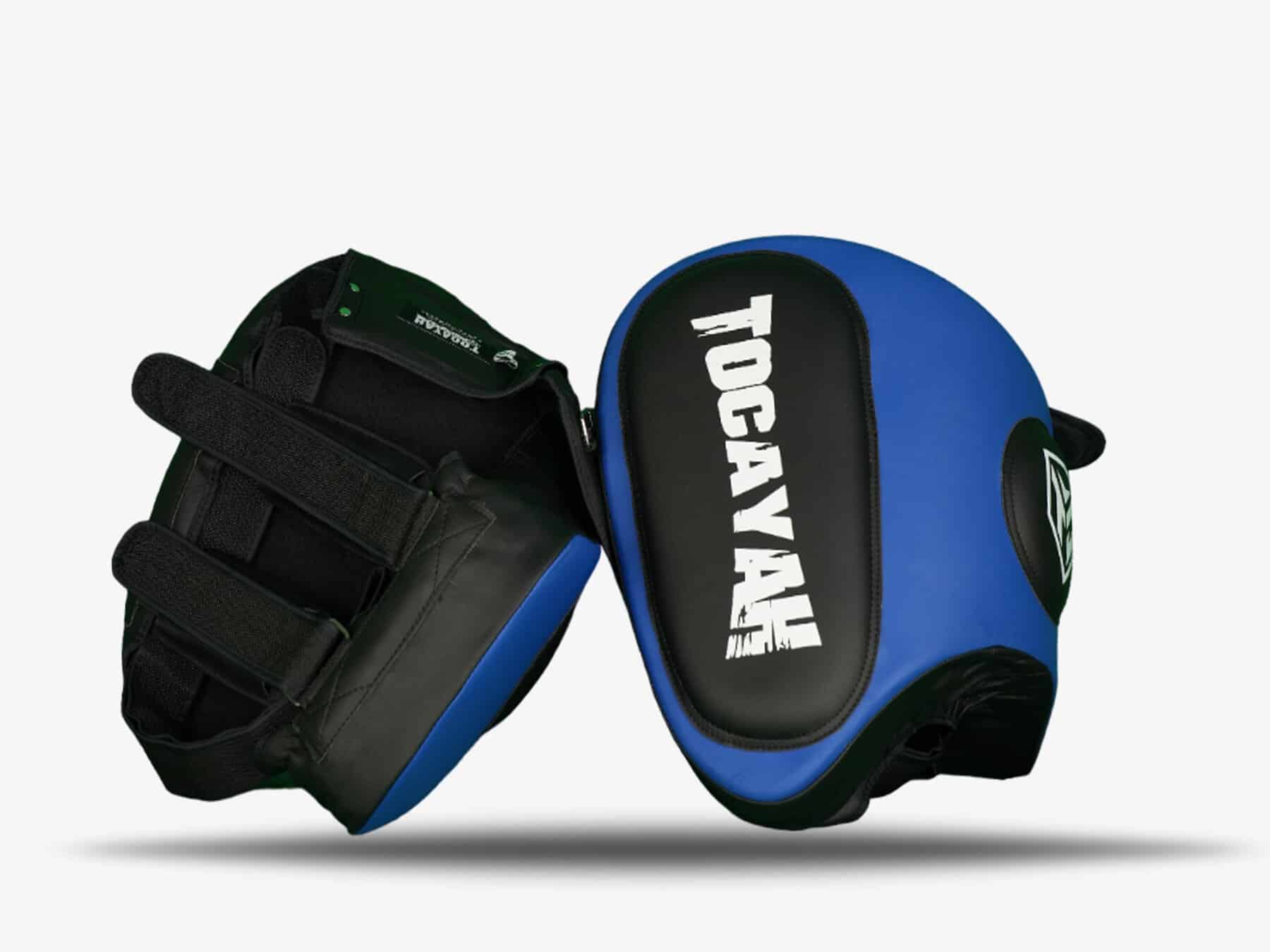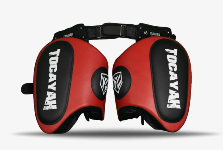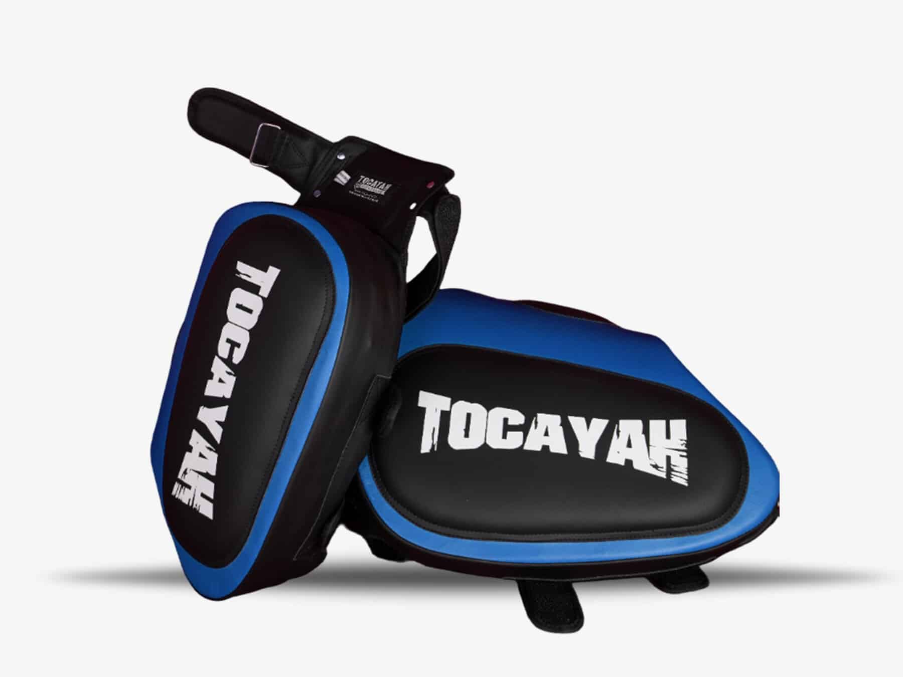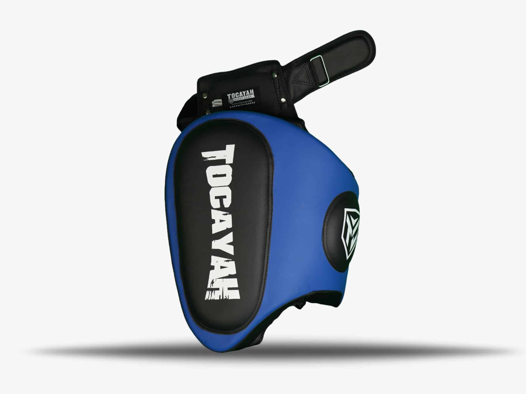 Tocayah KH 1.0 Blue Thigh Pads are perfect for training Muay Thai and kickboxing athletes. This equipment provides heavy duty protection to the pad holder’s upper legs. The exterior of these pads is use Premium Microfiber Leather, with four layers interior padding system. The combination of firm exterior padding, and soft inner padding, maximizes the shock absorbency of these thigh pads.